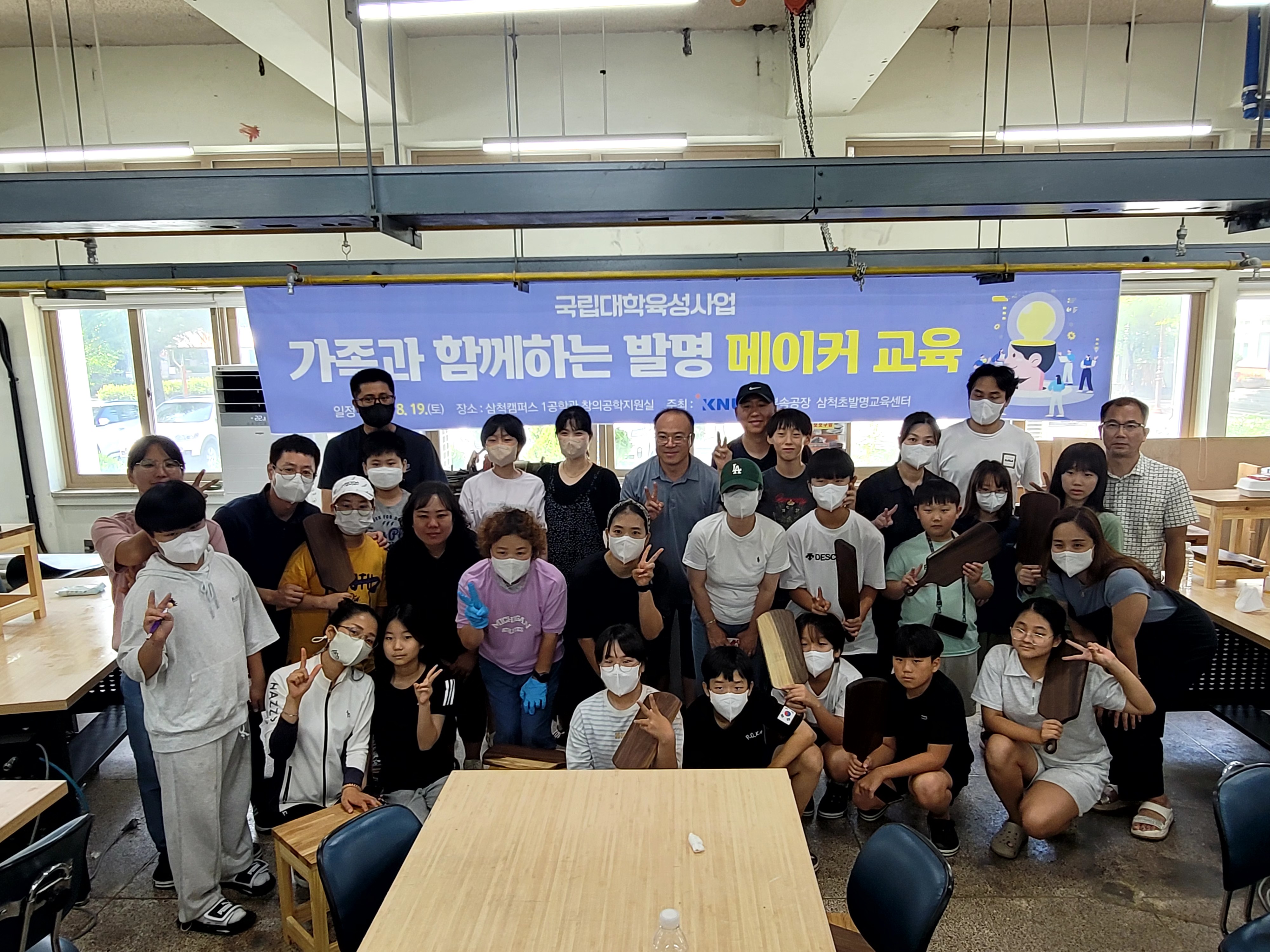 행 사 명 : 가족과 함께하는 발명 메이커 교육 프로그램 일 시 : 2023. 8. 19. 장 소 : 강원대학교 삼척캠퍼스 삼척부속공장 창의공학지원실 교육내용 : 가족과 함께 만드는 스툴의자, 도마 만들기 대 상 : 학생과 학부모로 구성된 지역주민